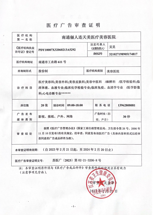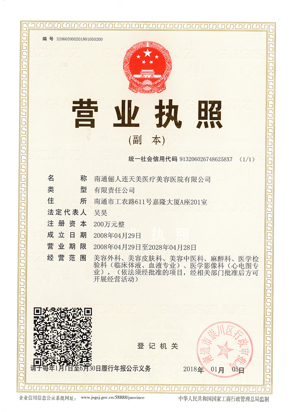 南通儷人連天美醫(yī)療美容醫(yī)院是與著名的醫(yī)療美容集團合作建立的醫(yī)院,醫(yī)院提供高品質(zhì)的醫(yī)療美容服務(wù)。2008年,南通儷人連天美醫(yī)療美容醫(yī)院落戶南通,成為由南通衛(wèi)生局審批的專業(yè)醫(yī)療美容醫(yī)院。南通儷人連天美醫(yī)療美容醫(yī)院,特別設(shè)有專業(yè)的整形美容科、皮膚美容科和微創(chuàng)美容科三大科室,致力于為廣大求美者提供全方位的醫(yī)療美容服務(wù)。南通儷人連天美醫(yī)療美容醫(yī)院為求美者建立個人終生美麗檔案,一對一進(jìn)行細(xì)致服務(wù)。 11年來,南通儷人連天美醫(yī)療美容醫(yī)院,不斷引進(jìn)先進(jìn)設(shè)備,不斷完善醫(yī)美技術(shù),一批優(yōu)秀、專業(yè)而穩(wěn)定的醫(yī)生團隊,為無數(shù)求美者鑄就美麗夢想。